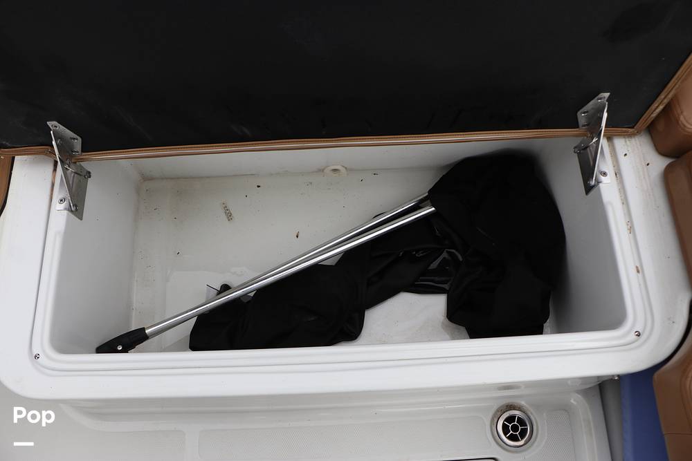 Roomy layout! There is plenty of room for the whole crew. There is lots of comfortable seating and storage and a sizeable bimini top to shade from the elements. The interior of this boat is roomy and very comfortable thanks to the generous amount of cushion and the premium upholstery and materials used by Crownline.