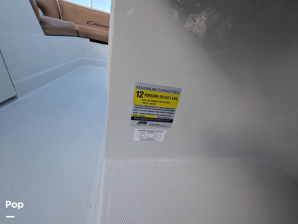 There's room for the whole crew! The boat can accommodate up to 12 adults. If you have never ridden in a Crownline boat, you and your passengers will appreciate the extra cushioning and luxury look and feel of Crownline's upgraded upholstery. In the bow are twin forward-facing lounges with storage below, and a swim platform with a sea-deck mat and swim ladder for easy water access from the bow.