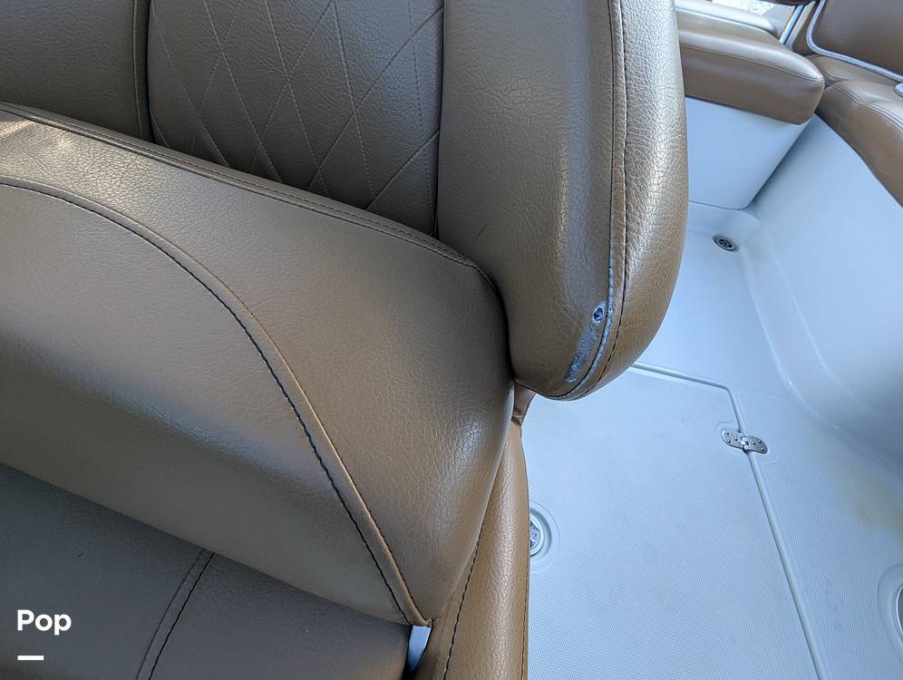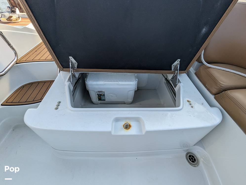 In the rear, you will find a spacious adjustable aft sun pad for hanging out on the water. Easy water access is provided via a large integral aft swim platform with a sea-deck mat and a telescoping stainless steel swim ladder.