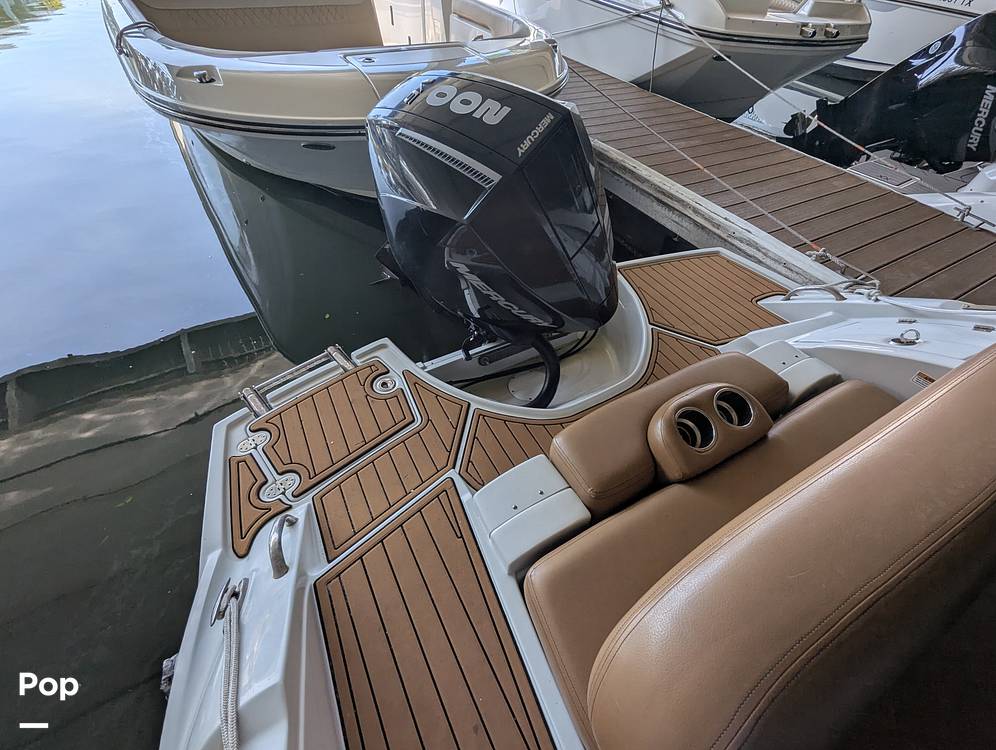 In the rear, you will find a spacious adjustable aft sun pad for hanging out on the water. Easy water access is provided via a large integral aft swim platform with a sea-deck mat and a telescoping stainless steel swim ladder.