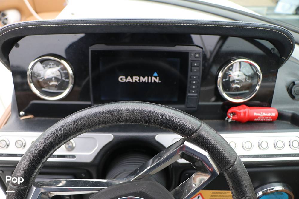 The boat has the sleek styling and ride of a sport boat, along with the comforts and conveniences of a deck boat with an outboard engine.