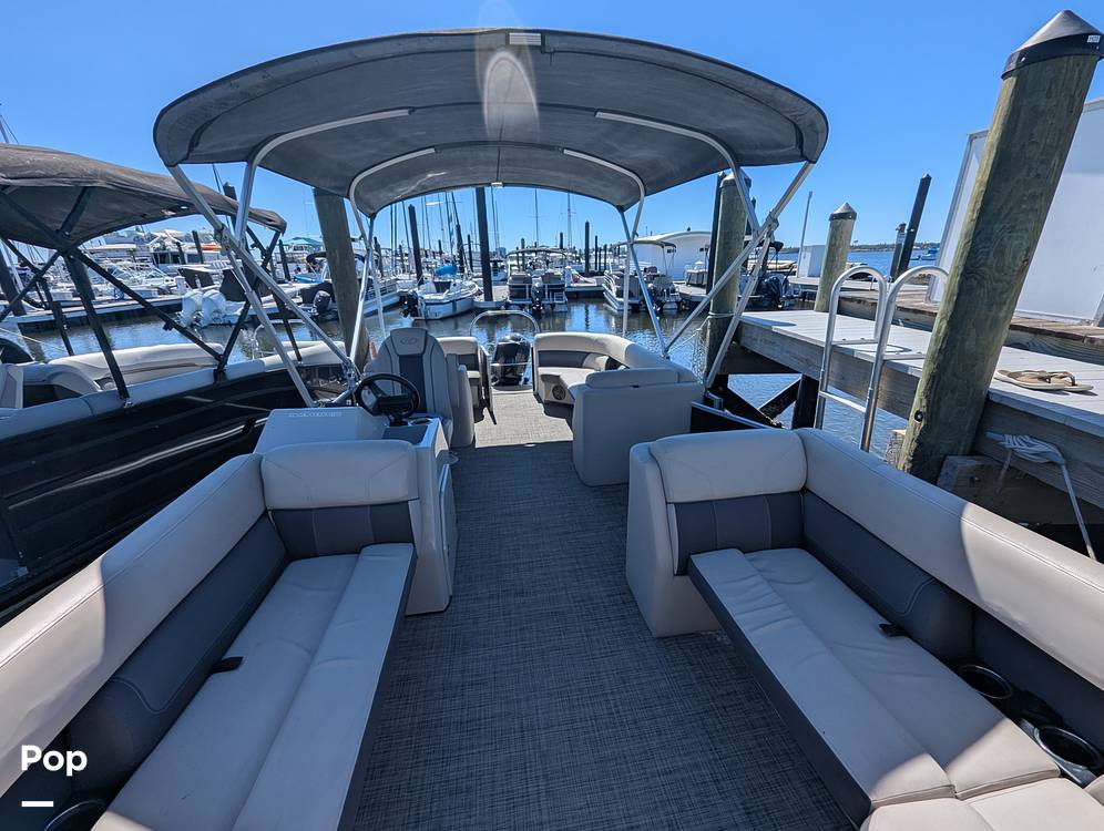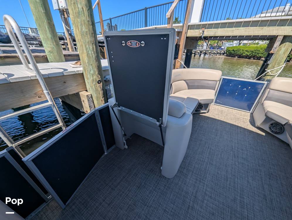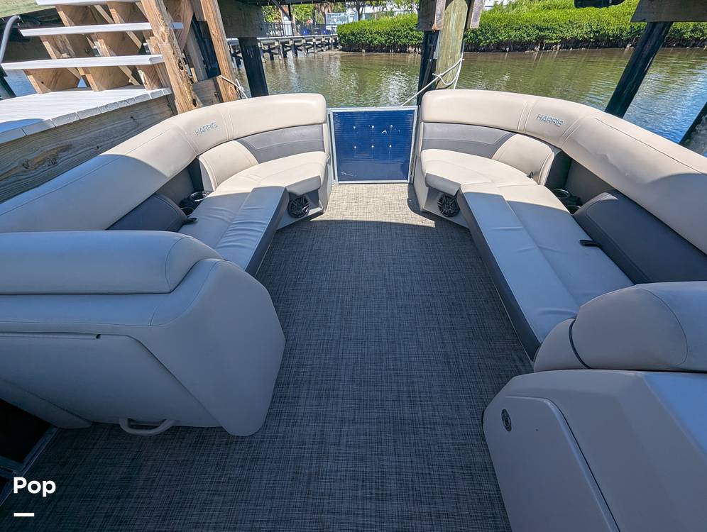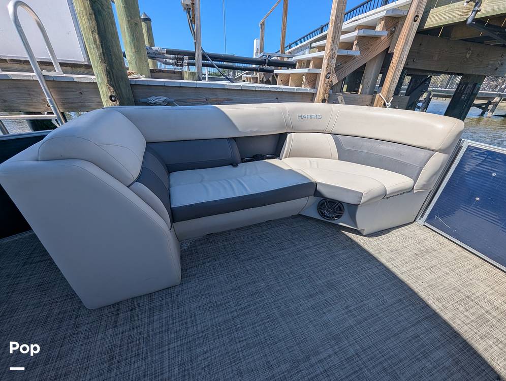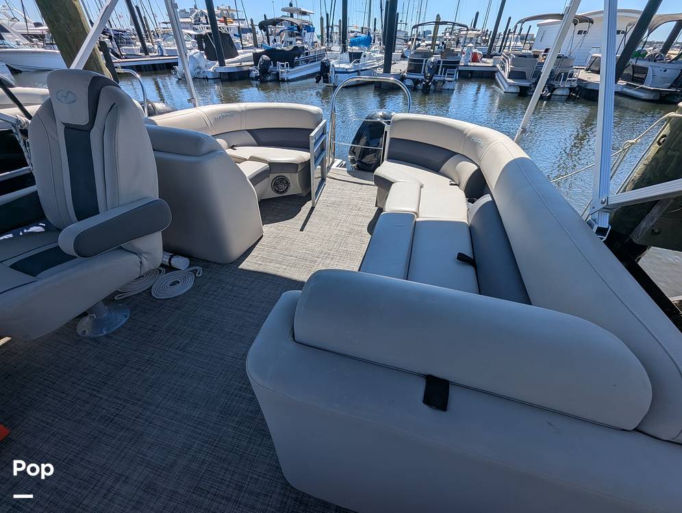 This 2023 Harris 230CR Tritoon Boat is ready for fun in the Sun! It is equipped with a Mercury 150 HP four-stroke outboard engine, providing plenty of power for family water sports, heading out to the sandbar, or cruising with family and friends! Mercury outboard.