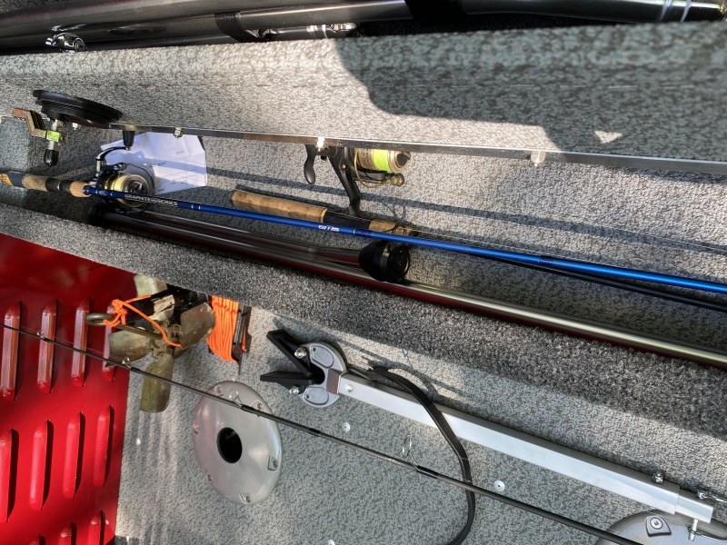 Boat has a 50hp Mercury which has never been in the water never run the boat has only been on the water one time and that was electric motor only.Has an on board charger, Stereo, Bow mount Min Kota 55lb trust trolling motor, Transom mount Trolling Motor 55lb , Bimme Top, live well, Humming bird Helix 5 fish finder, Two rod lockers and storage.Consol Steering, Three pedestal seats