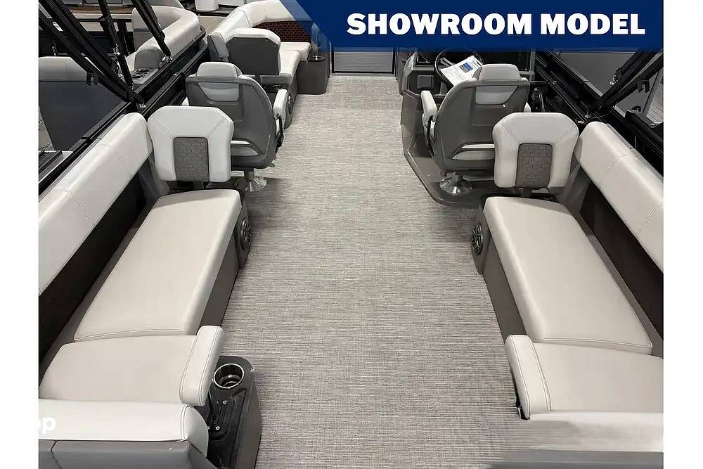 This vessel is built on a solid 8.5-foot-wide beam and features 25-inch-diameter multi-chambered pontoons, ensuring a stable, smooth ride even with a full crew.
