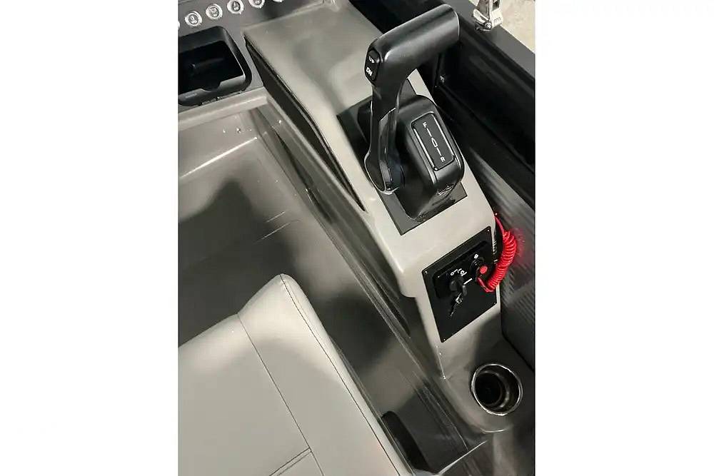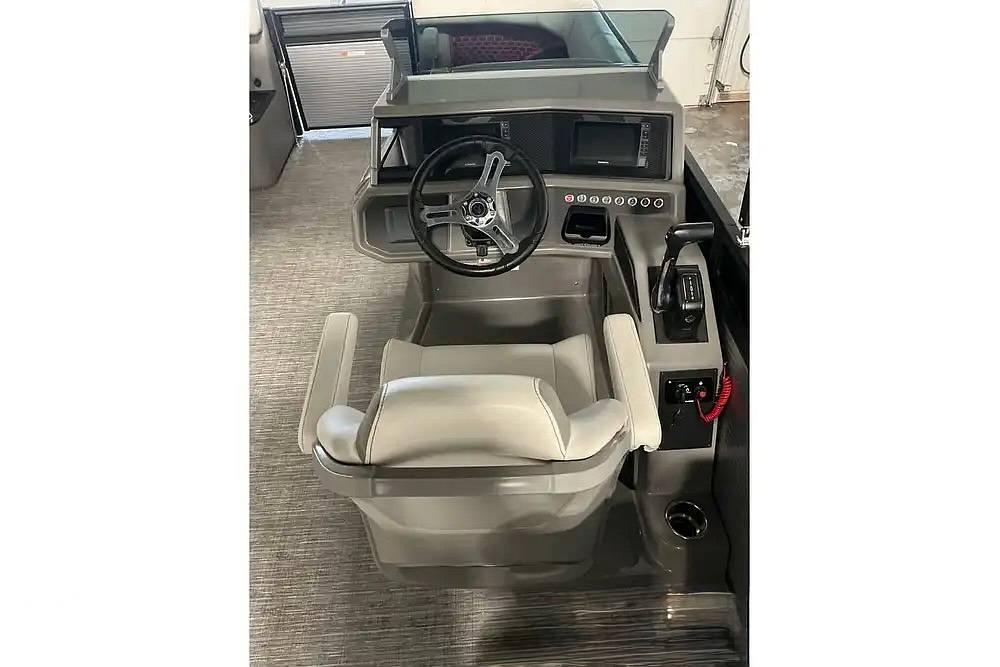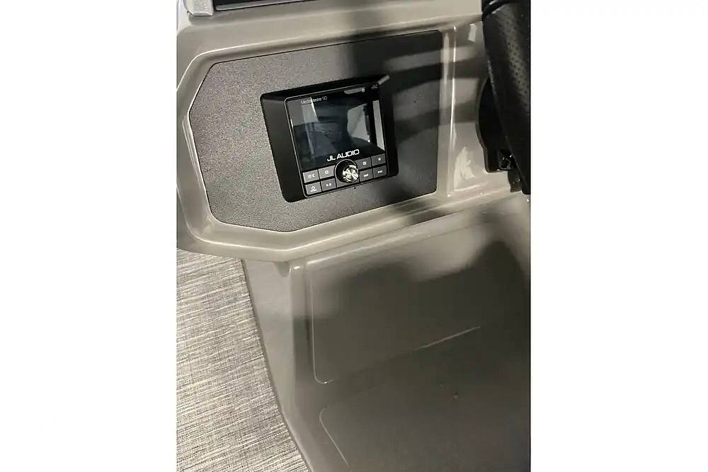 The captain will feel in total control at the sleek fiberglass helm, which comes standard with dual 7-inch Garmin multi-function displays and an upgraded JL Audio sound system featuring LED-lighted speakers to set the perfect mood for evening cruises.
