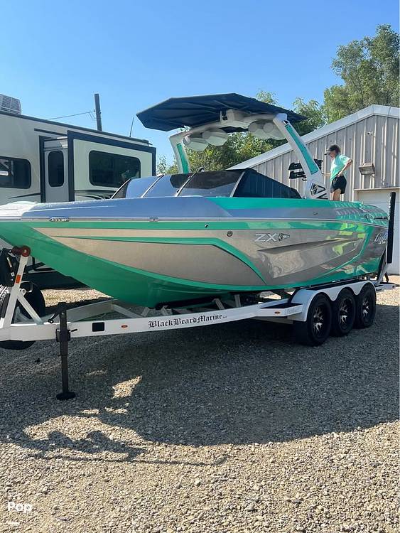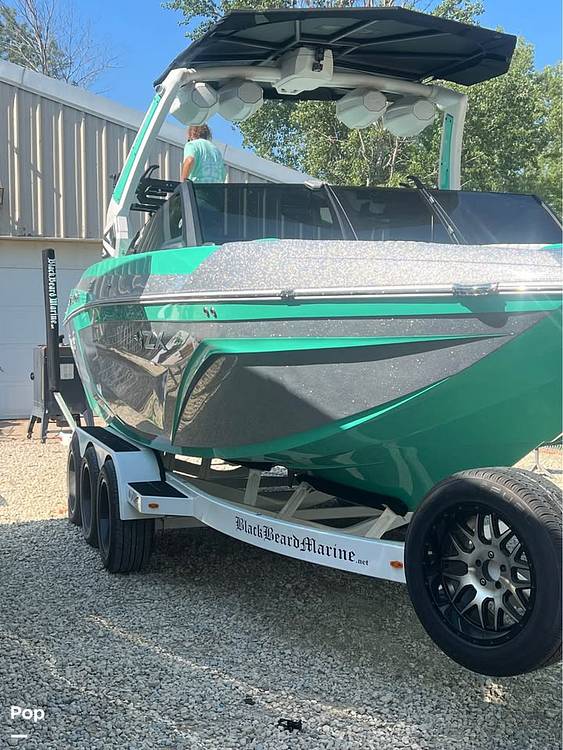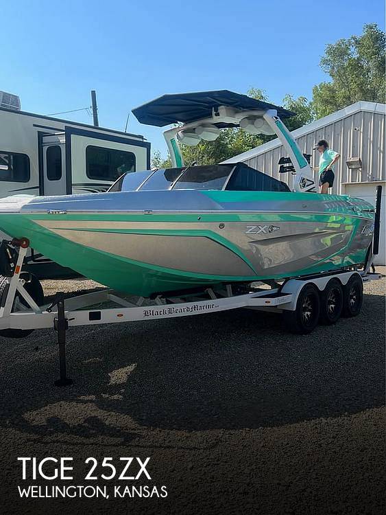 This 2023 Tige 25ZX, located in Wellington, KS, is the ultimate in wakeboard boats, and the stunning color combo will surely get you noticed out on the lake, too!