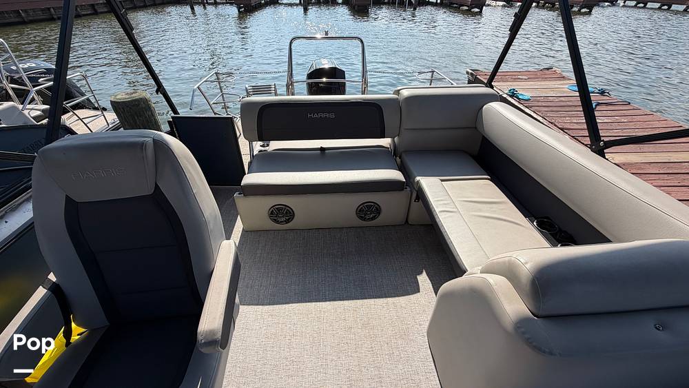Step aboard this Harris Cruiser 230CR, a premium 23-foot tritoon designed for comfortable days on the water, featuring the upscale fit and finish for which Harris is known.