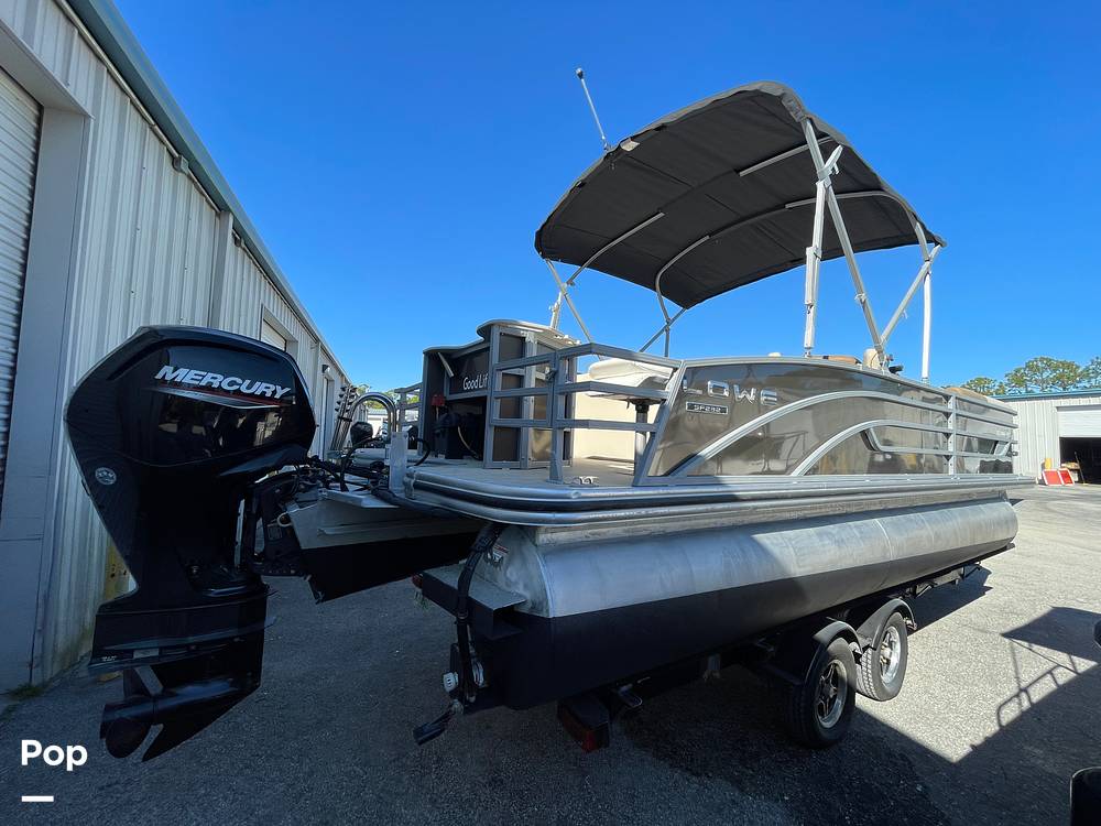 This awesome 2024 Lowe SF232 Pontoon comes with a Mercury 115hp 4-stroke outboard engine and a dual axle trailer!