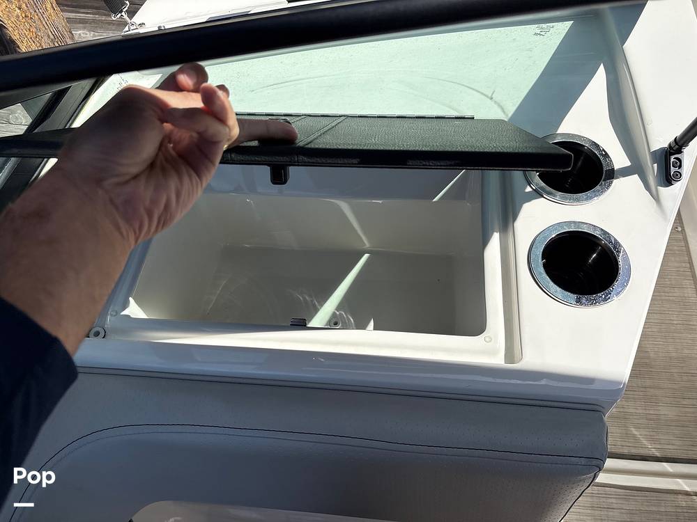 The luxurious cockpit features L-shaped bench seating and easy-access cooler storage, making it perfect for entertaining family and friends.
