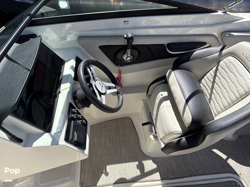 The helm is designed for boaters of all experience levels, equipped with a Digital Dash featuring a 7″ Simrad touchscreen display and SmartCraft Connect for intuitive engine monitoring. Everything is controlled at the touch of a button, making the operation smooth and effortless.