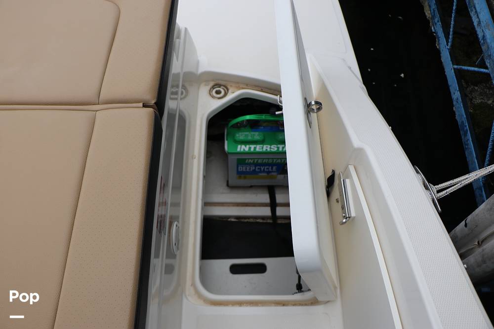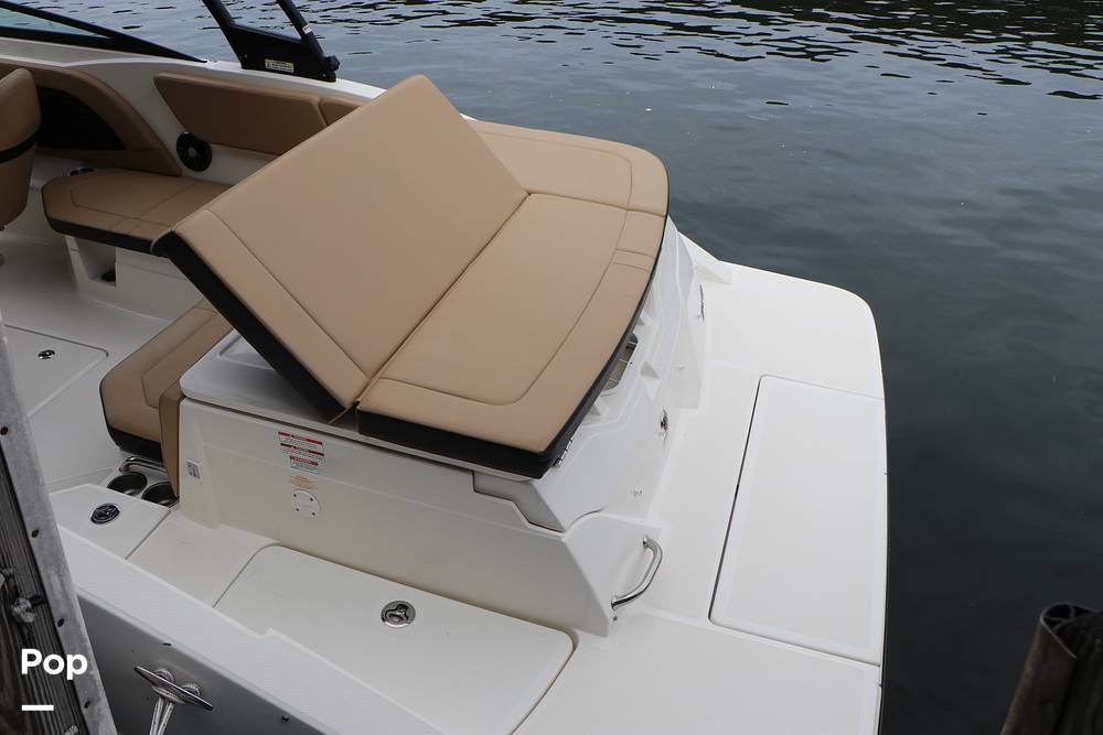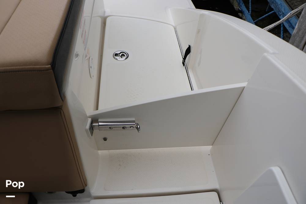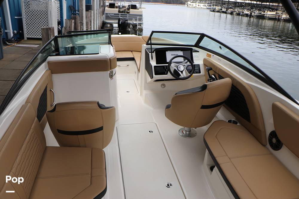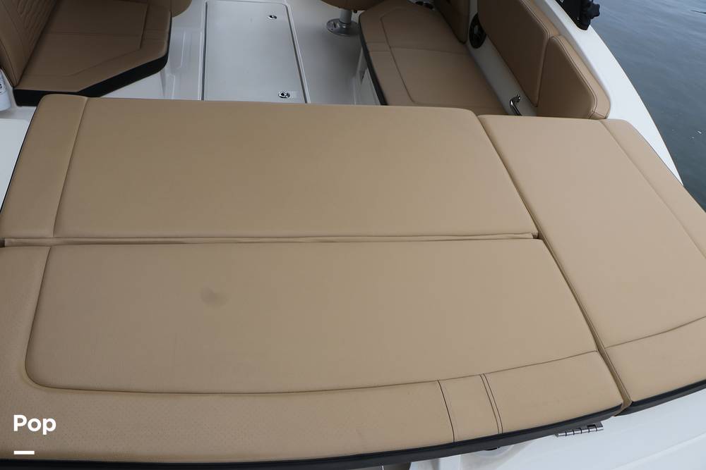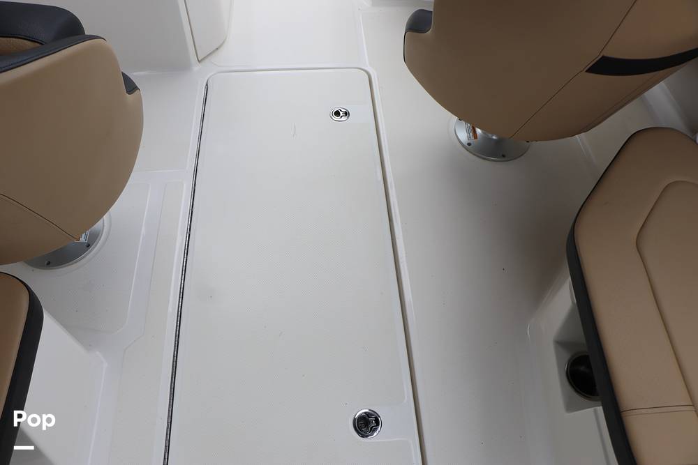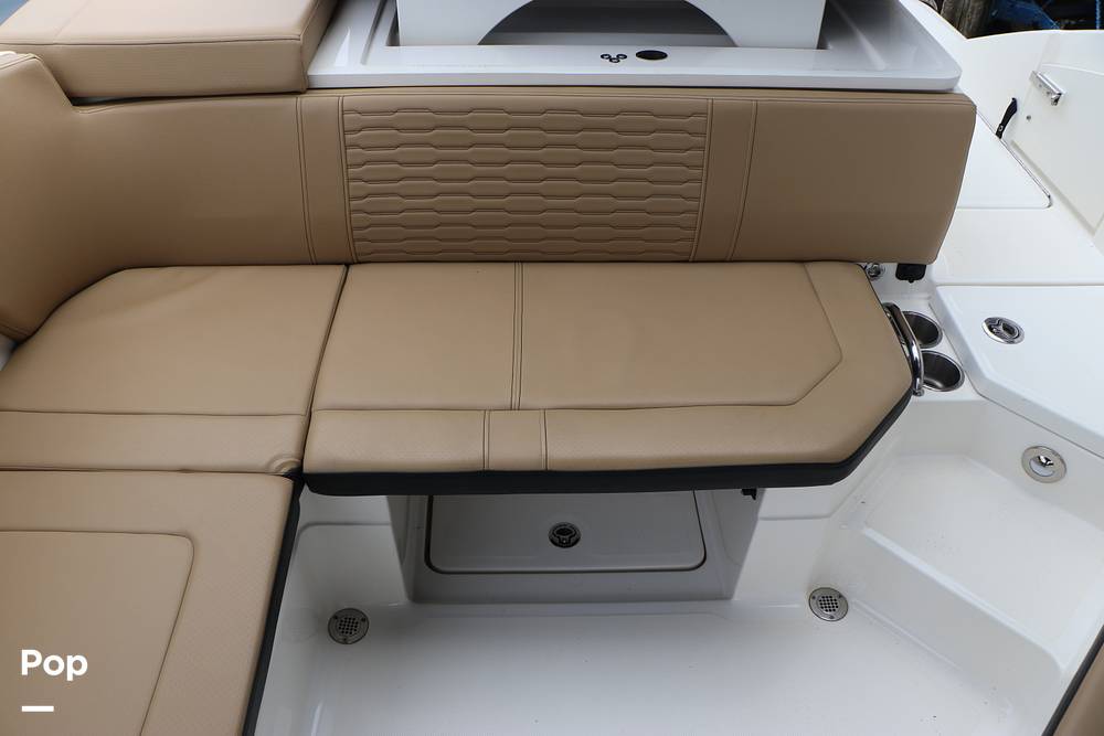 All key functions are close at hand, with a Simrad display for navigation and a Fusion Bluetooth stereo system powering clear audio through marine-grade speakers. A private changing room/head compartment provides comfort and convenience, and ample storage keeps your gear neatly organized.