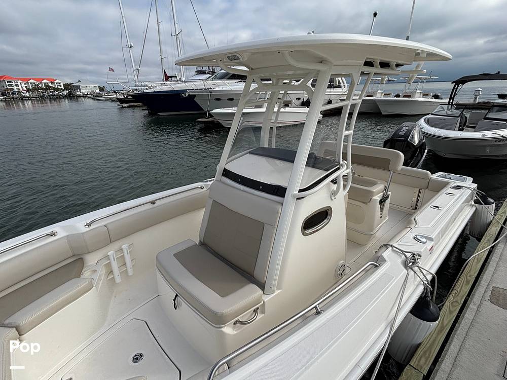 For anglers, the boat includes large in‑floor fishboxes, a 30‑gallon livewell, rod storage, and multiple rod holders, making it easy to keep gear organized and ready for action. Raw and freshwater washdowns add convenience for cleaning up after a successful day of fishing. Inside the center console, you'll find a clean, well‑maintained head compartment that adds comfort and practicality for longer outings. Stainless steel hardware throughout the boat reflects Boston Whaler's commitment to durability and quality craftsmanship.