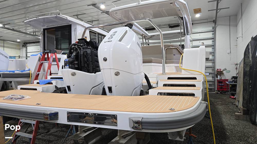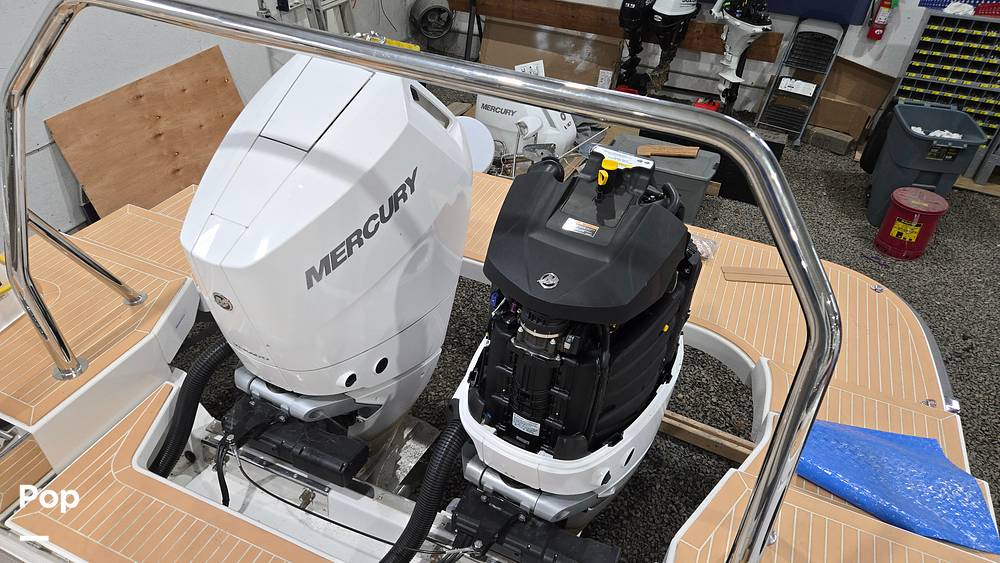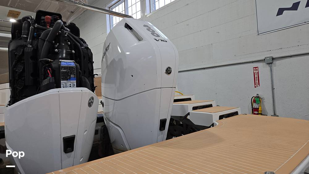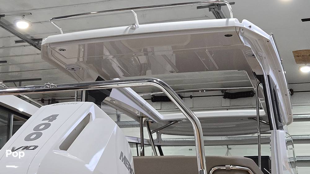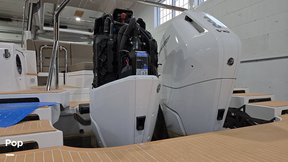 Power comes from twin Mercury outboard options, including the upgraded 400hp V10 Verado engines.