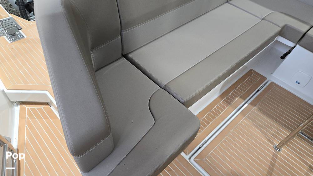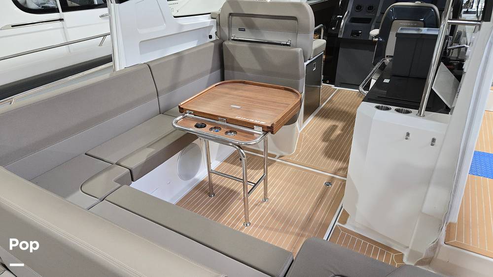 The ergonomic helm features an extensive navigation package with a Simrad Plotter, Radar, and Sonar, all complementing the Mercury Joystick system, making your time at the wheel as effortless as your time at anchor.