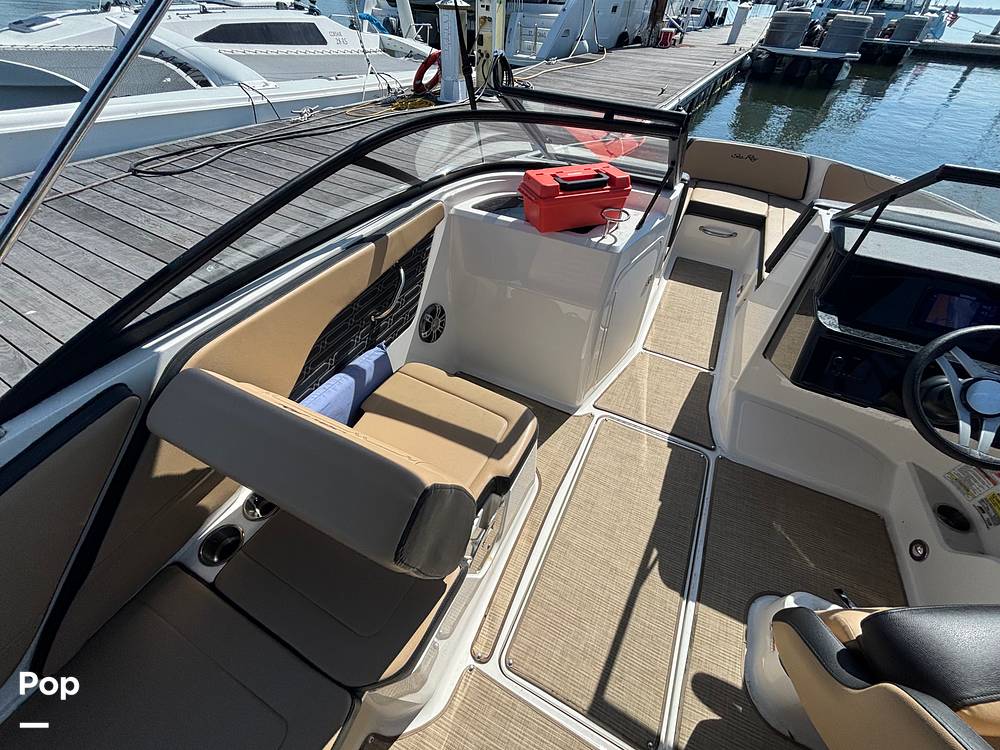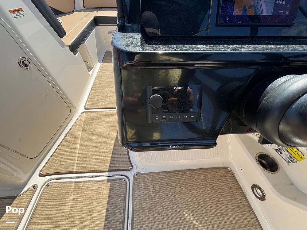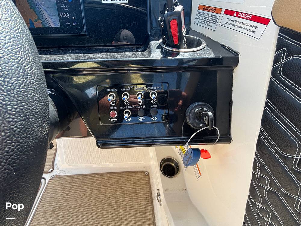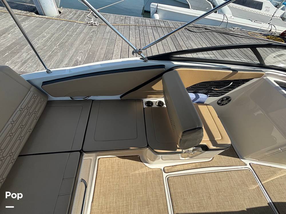The luxurious cockpit features L-shaped bench seating and easy-access cooler storage, making it perfect for entertaining family and friends.